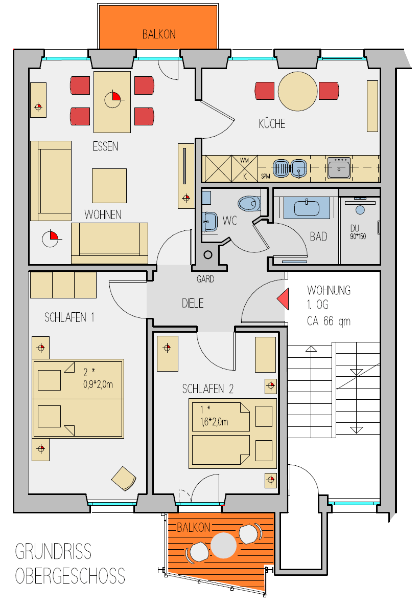 Ferienwohnung 1. Obergeschoss (ca. 66 qm) Typ A: